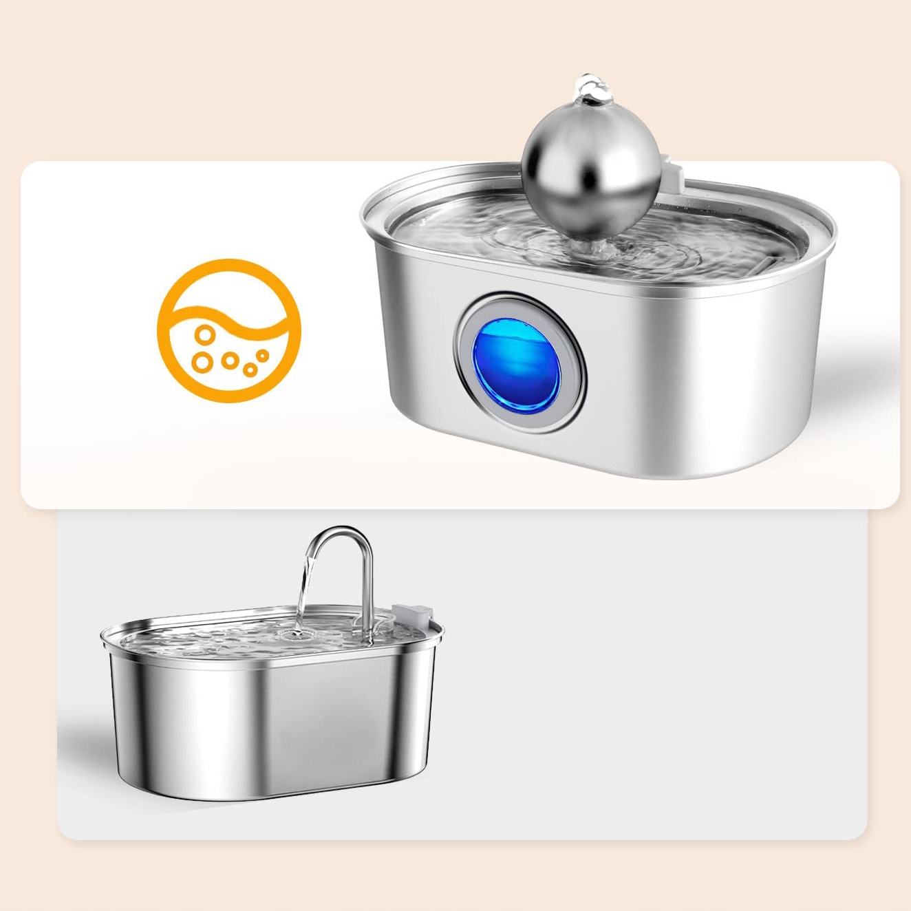 Наш фонтан для домашніх тварин виготовлено з нержавіючої сталі 304, що забезпечує його довговічність і високу ефективність навіть після багатьох років використання. Властивості нержавіючої сталі спрощують очищення, зберігаючи якість води та гігієну. Ми розуміємо важливість здоров’я вашого вихованця, тому наш фонтан для води для домашніх тварин гарантує, що ваші вихованці завжди матимуть доступ до чистої та гігієнічної питної води.