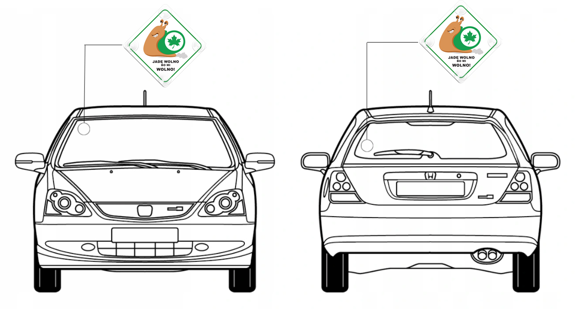 Представлений продукт не є наклейкою для маркування транспортних засобів, якими керує водій протягом перших 8 місяців випробувального періоду, і не є знаком у розумінні Постанови Міністра інфраструктури та будівництва від 11 грудня 2017 «Про реєстрацію та маркування транспортних засобів та вимоги до реєстрації номерних знаків».