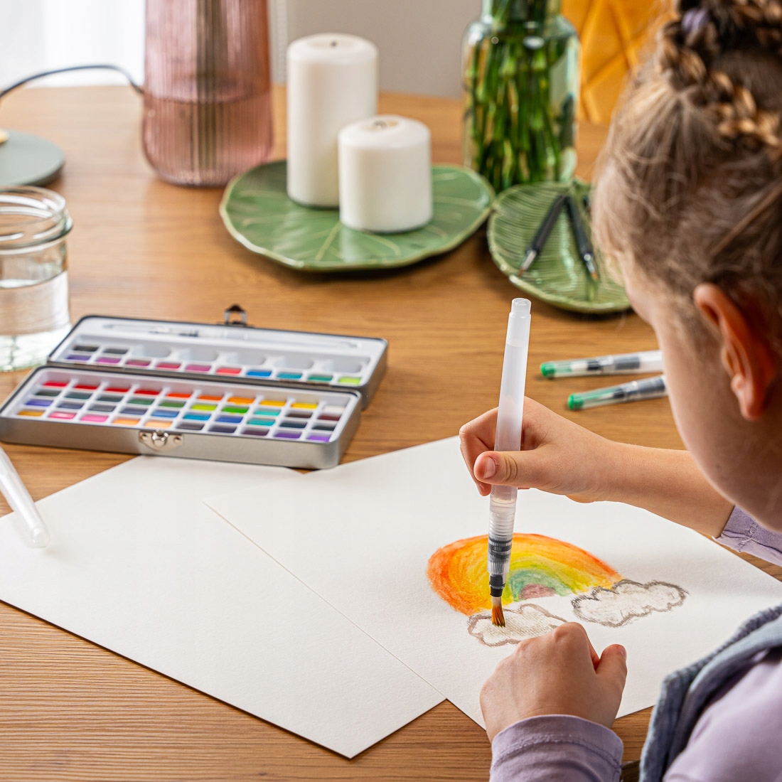 - 1 ВОДНА ПЕНЗЛИК: Забезпечує легке й точне фарбування без необхідності постійного замочування у воді . Просто стисніть гнучкий корпус і видаліть потрібну кількість води, щоб досягти ідеального рівня покриття.