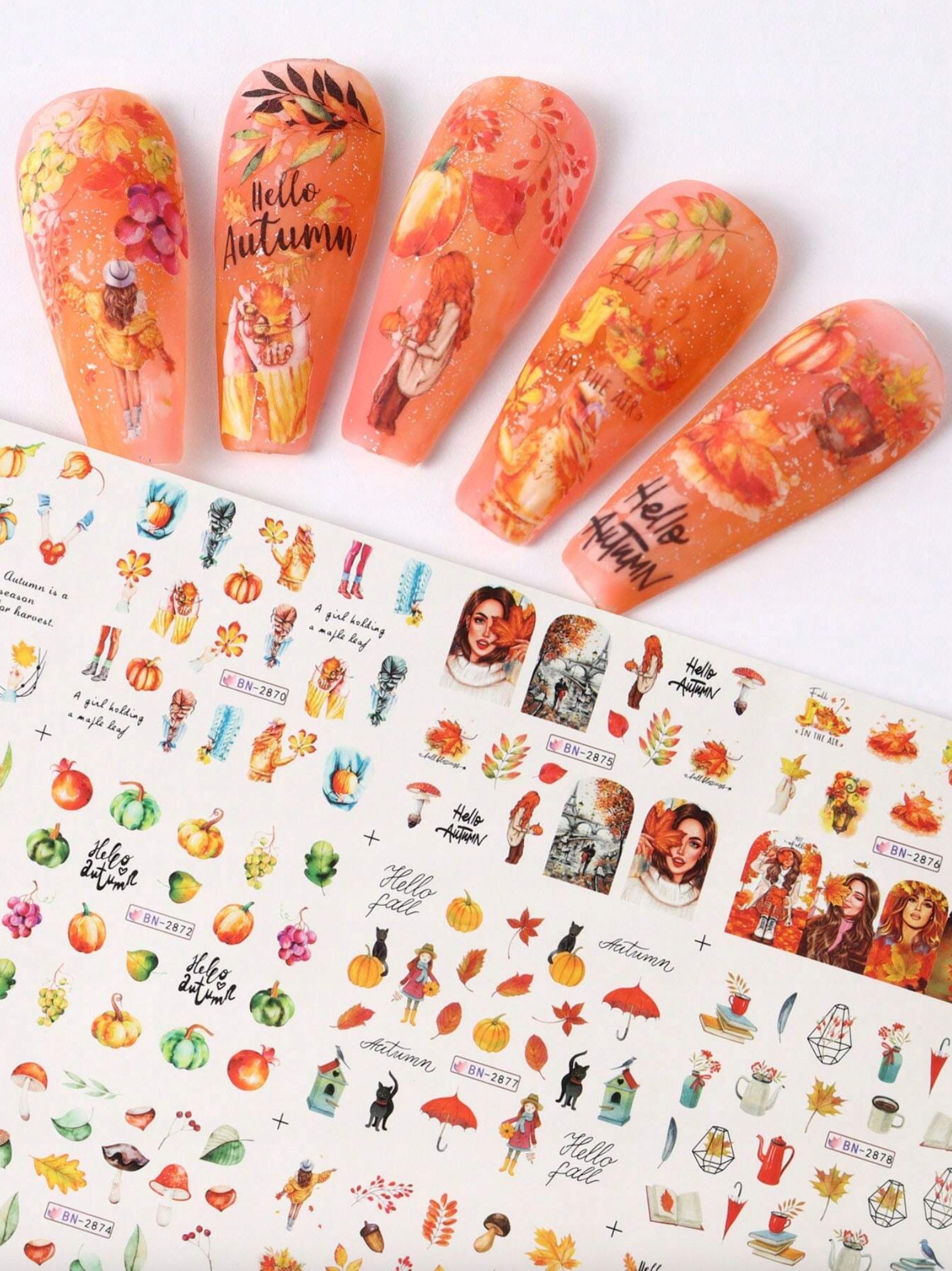 Водні наклейки для прикрас для нігтів листа 12 осінніх будинків дизайни листя