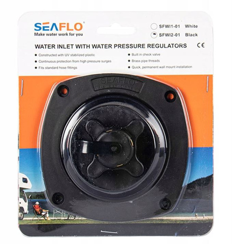 Фільтр води з регулюванням фільтра та тиску - вливання чистої води, що використовується в караванах, будинках та човнах. Зроблено з високоякісної стійкої до погоди пластмас. Він має зворотний клапан, внутрішній, латунний нитка та сітчастий фільтр, виготовлений з нержавіючої сталі. Продукт: SFWI2-01