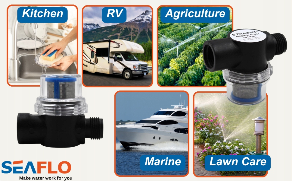 Водний фільтр із ситечком для насоса тиску Seaflo Нитка 1/2 '' 14MNPT
