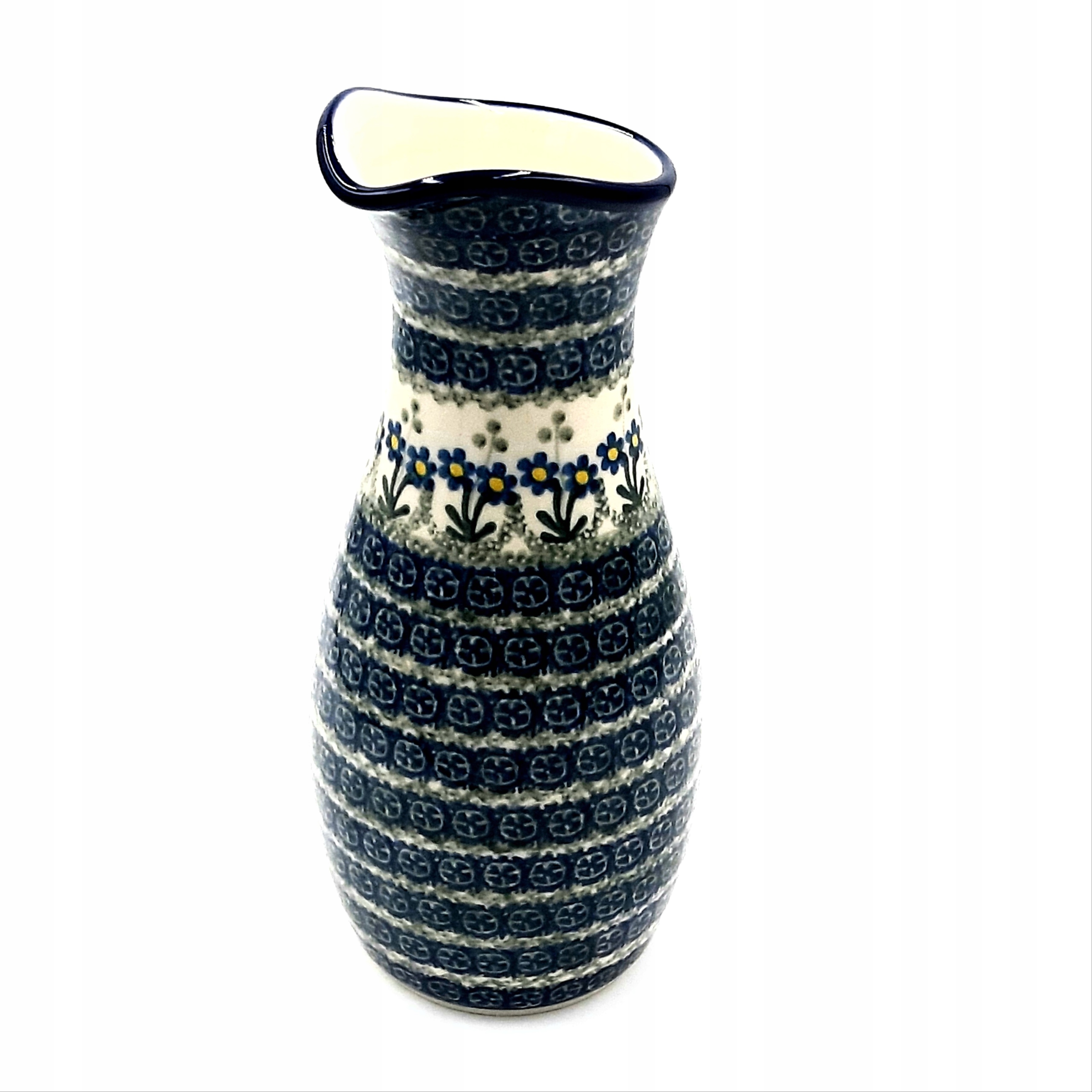 Carafe/ Vase , виготовлена з Болеславеєка, є елегантною і функціональною vessel, яка ідеально підходить до традицій рукуни. Зроблено з високоякісною глиною, покритою характерною, блискучою глазур'ю в відтінках синього та сірого кольору, прикрашених руками, розфарбованими квітковими мотивами. полиця або таблиця.