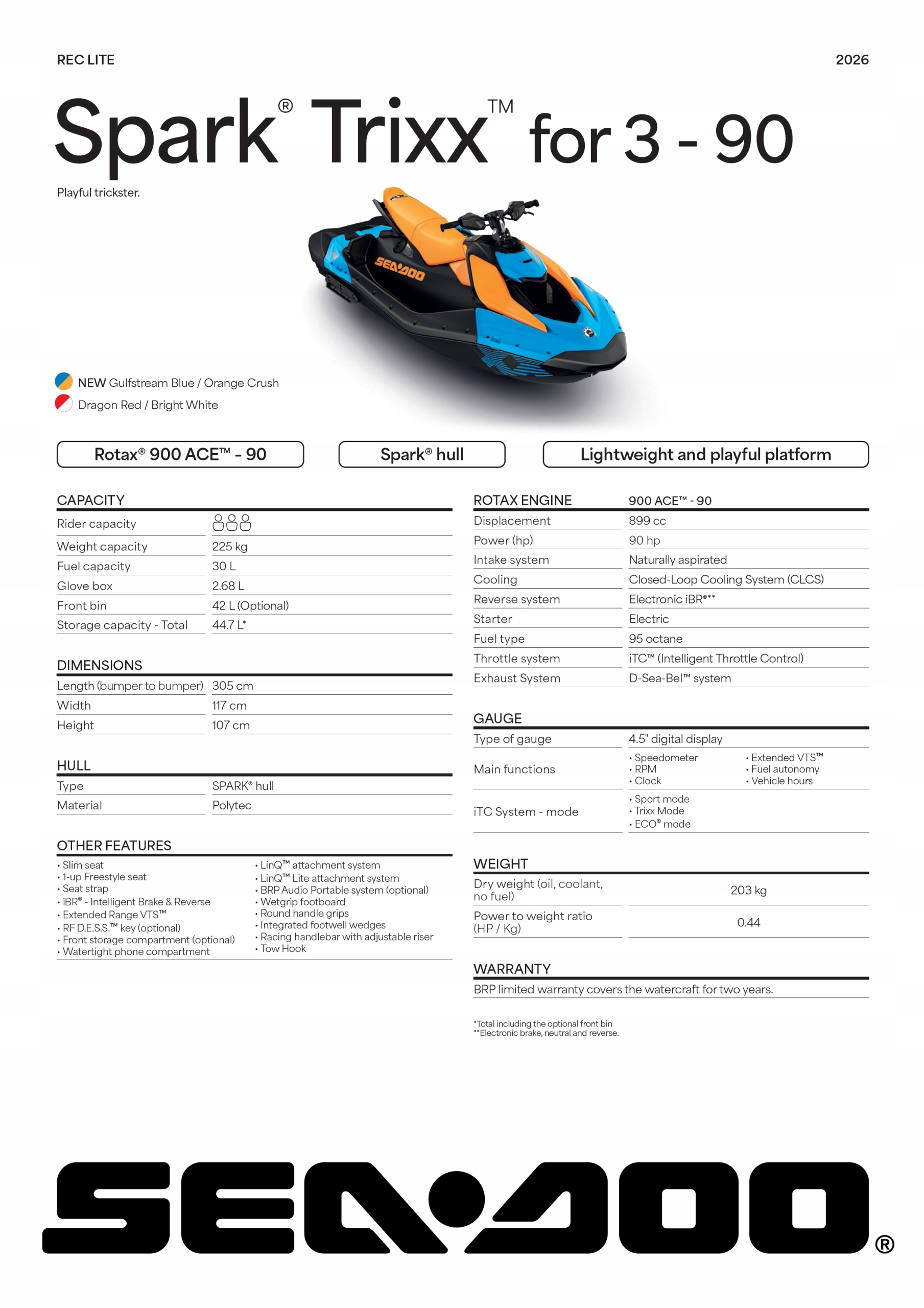 SEA-DOO Spark Trixx 1up 90 iBR Модельний рік 2026