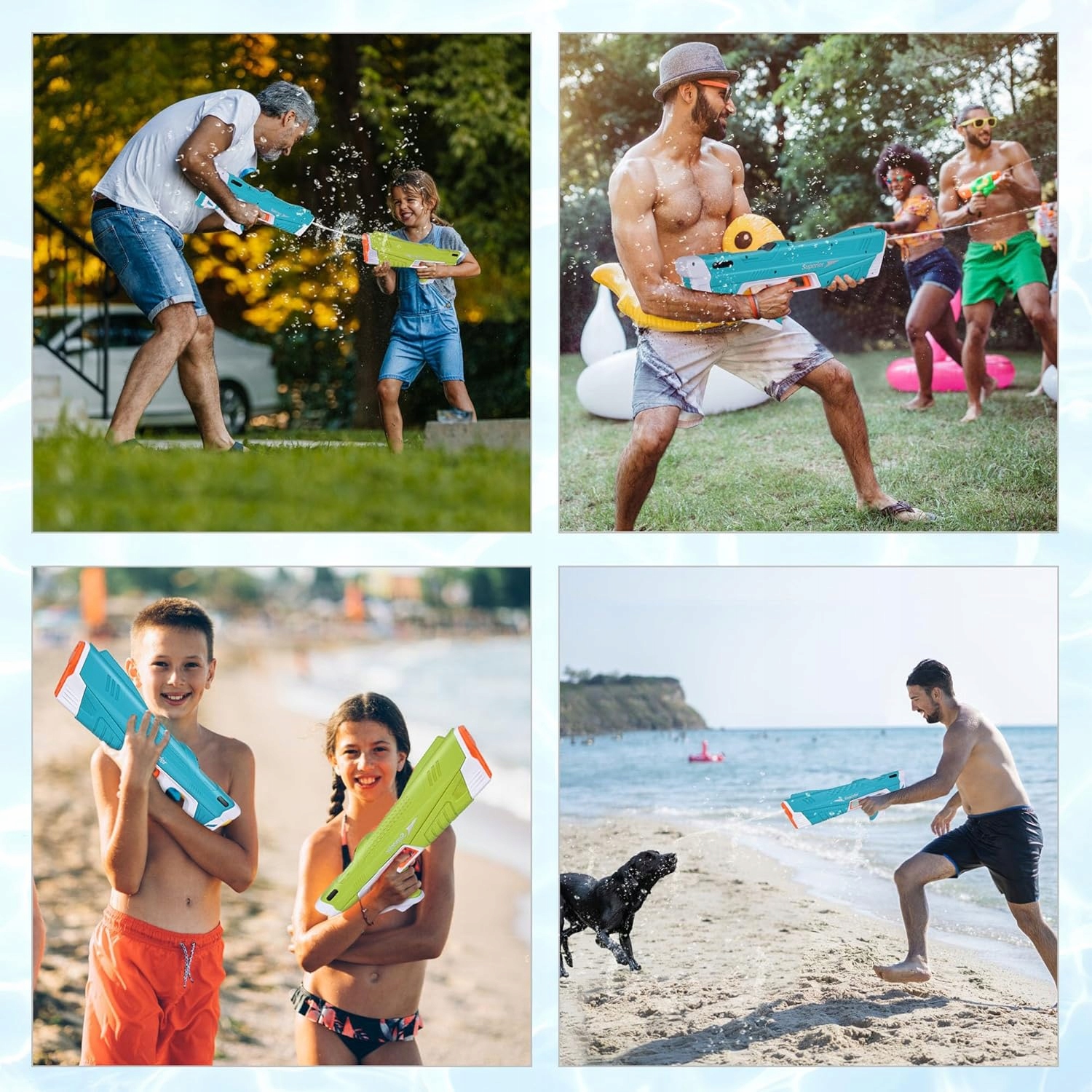 Виготовлений з високоякісного, нетоксичного пластику, цей електричний водяний пістолет -це чудовий вибір для вас, ваших друзів та дітей, щоб насолодитися кумедною літньою вечіркою на пляжі, в морі, біля басейну та у дворі, коли ви хочете влаштувати вечірку на пляжі влітку. Цей водний пістолет також є хорошим вибором як подарунок на день народження для дітей.