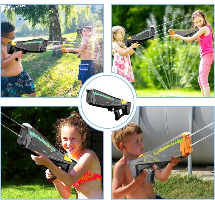 Водонепроникна конструкція робить цей водний пістолет не тільки іграшкою, але й надійним супутником під час літніх пригод. Не турбуючись про пошкодження, ви можете вільно використовувати його під час дощу, в басейні або на пляжі, насолоджуючись безперебійним задоволенням до 40 хвилин завдяки ефективному акумулятору.