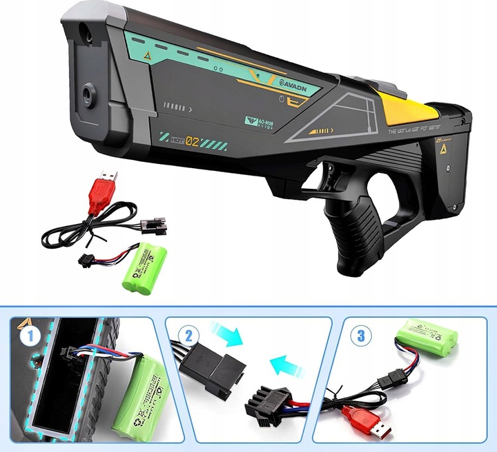 Водний пістолет електрична водна гвинтівка двигуна двигуна батарея + USB
