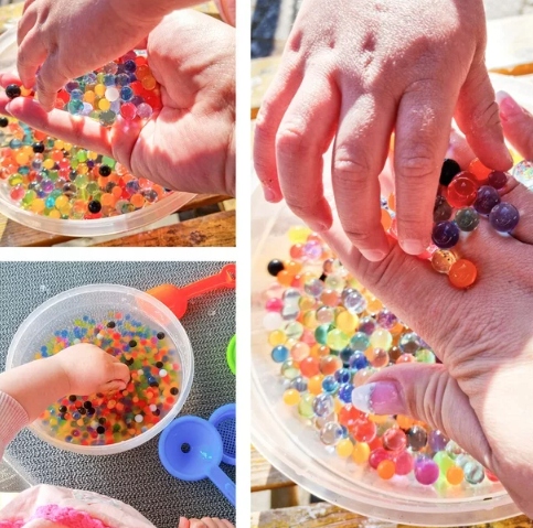 - Гідрогелеві кульки часто використовують як сенсорні іграшки для дітей.