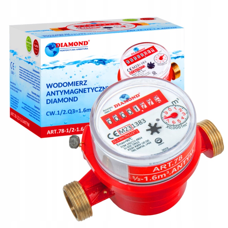 Лічильники води DIAMOND доступні в двох кольорах: синьому та червоному. Лічильники синього кольору призначені для використання з холодною водою (Т30 - водоміри, призначені для використання у воді до 30°C), а червоні - для гарячої води (T90 - водоміри, призначені для використання у воді до 90°C).