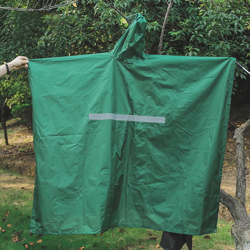 Це пончо від дощу, виготовлене з поліестерової тканини з поліуретановим покриттям, є водонепроникним PU5000MM. Капюшон на шнурках захищає ваше обличчя, а застібки з боків клейкою стрічкою забезпечують ідеальну посадку. Можна також використовувати як кемпінговий килимок або парасольку, ідеально підходить для кемпінгу, походів, подорожей та інших заходів на природі.