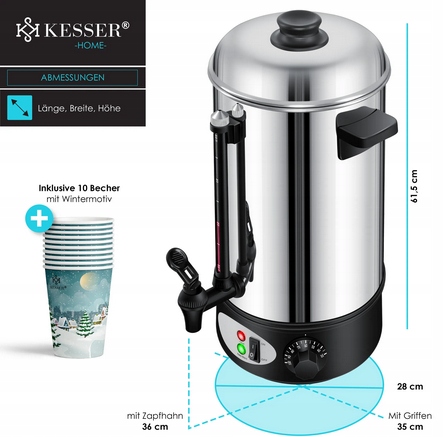 Завдяки Кессеру ви можете легко і швидко нагрівати та нагрівати всі напої. Ви також можете швидко нагрівати супи та інші рідини та зберегти їх теплими. Машина для гарячих напоїв, ідеально підходить для невеликих зустрічей та урочистостей з друзями та родиною, і навіть для розваг для невеликих груп. Ідеально підходить для різдвяного ринку або вдома.
