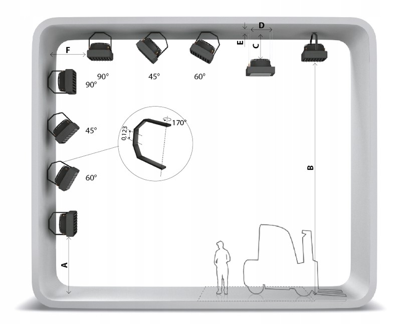 - Горизонтальний діапазон: 7 / 9,5 / 12,5 м