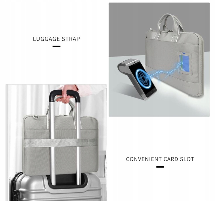 - 【Багатофункціональна】сумка для комп’ютера має зовнішню кишеню для карток для зручного відображення та ремінь для багажу для подорожей. Плечовий ремінь, щоб звільнити руки.