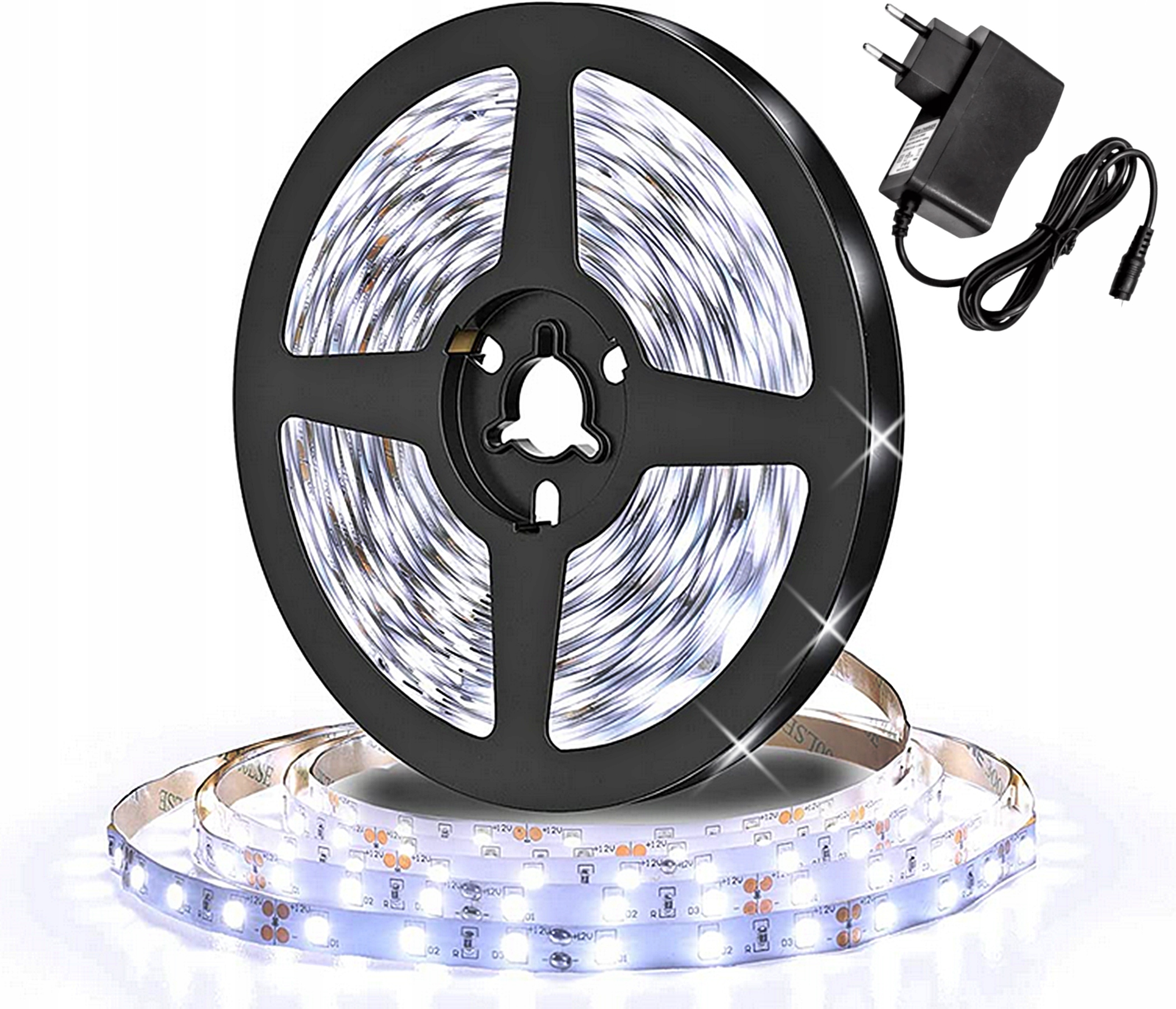 ВОДОНЕПРОХОДНА СВІТЛОДІОДНА СТРІЧКА ХОЛОДНА БІЛА 5М SMD БЛОК ЖИВЛЕННЯ