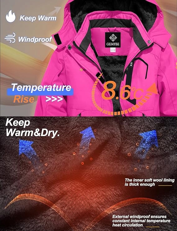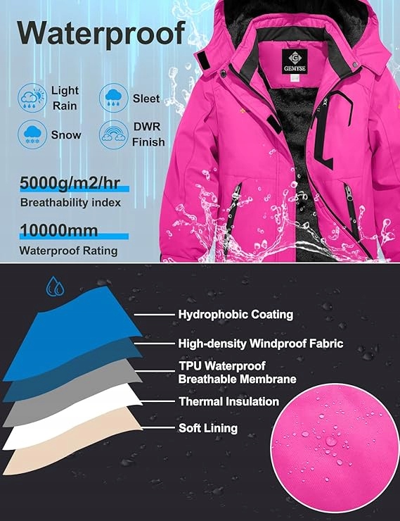 ⭐ Дитяча водонепроникна гірськолижна куртка GEMYSE CT001 з капюшоном і вітронепроникна зимова куртка з флісовою підкладкою ⭐