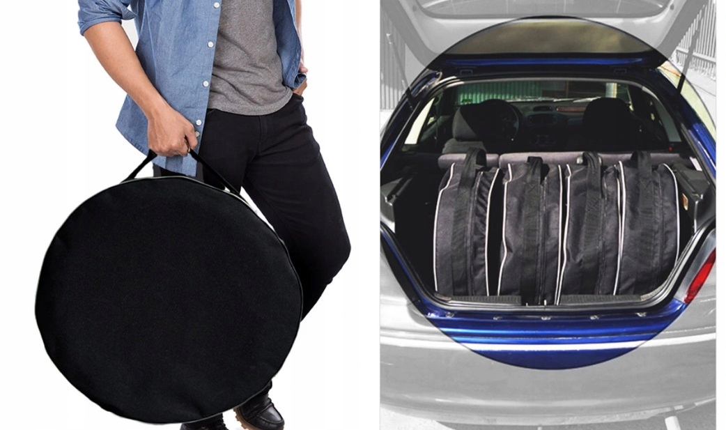 Нижче ми представляємо ковпаки на шини/колісні диски у версії «СТАНДАРТ», виготовлені з міцного водонепроникного матеріалу з ПВХ-покриттям під назвою codura. Чохли розроблені та виготовлені компанією LASOTA, підігнані під розмір шин, вказаний на аукціоні. Для виготовлення чохлів використовувалися найякісніші матеріали, такі як: шкіряні нитки, петля-блискавка 0,5 см, шкіряний ремінь і ремінь для перенесення товщиною 40 мм навколо чохла, вантажопідйомністю кілька сотень кілограмів, тому в чохлах можна безпечно перевозити не тільки самі шини, але і шини на дисках. Чохли нашої компанії полегшують перенесення, транспортування та естетично зберігають шини та цілі колеса протягом багатьох років. Крім того, на кожному чохлі є вишитий напис із маркуванням шини (наприклад, PT - права задня тощо).