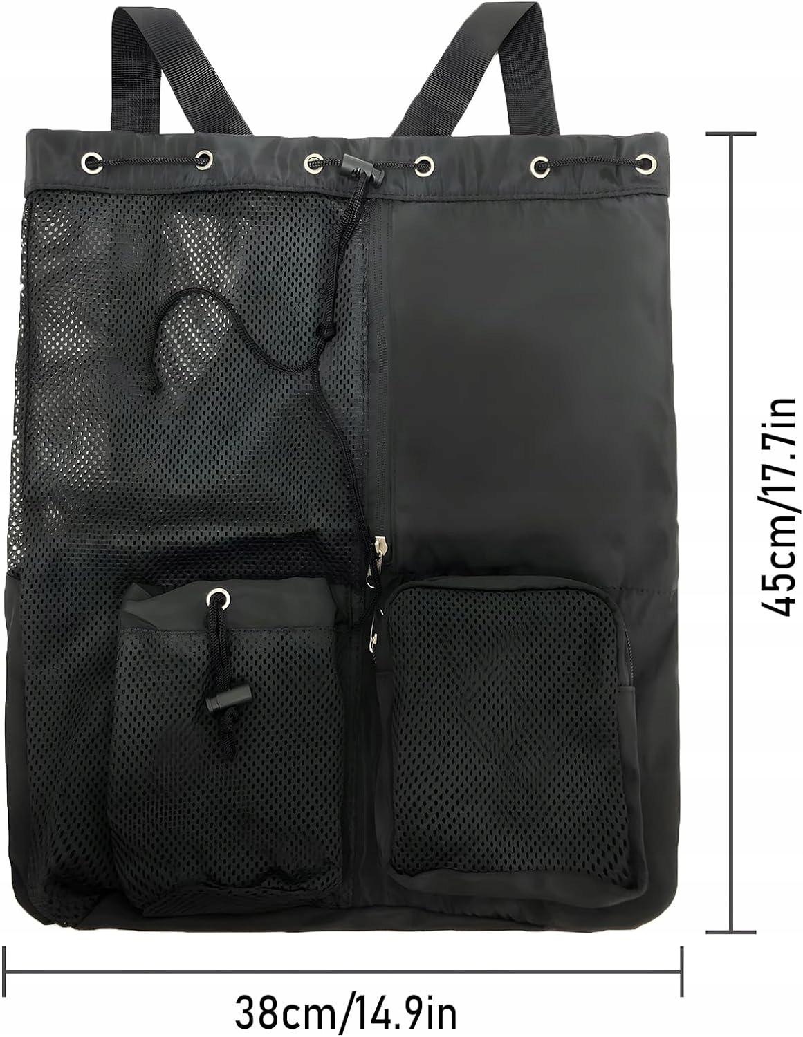 З великим основним відділенням для одягу та рушників і двома передніми сітчастими кишенями для таких речей, як окуляри та пляшки з водою, він ідеально підходить для плавання, їзди на велосипеді, кемпінгу, походів, поїздок на пляж, тренувань у спортзалі тощо.