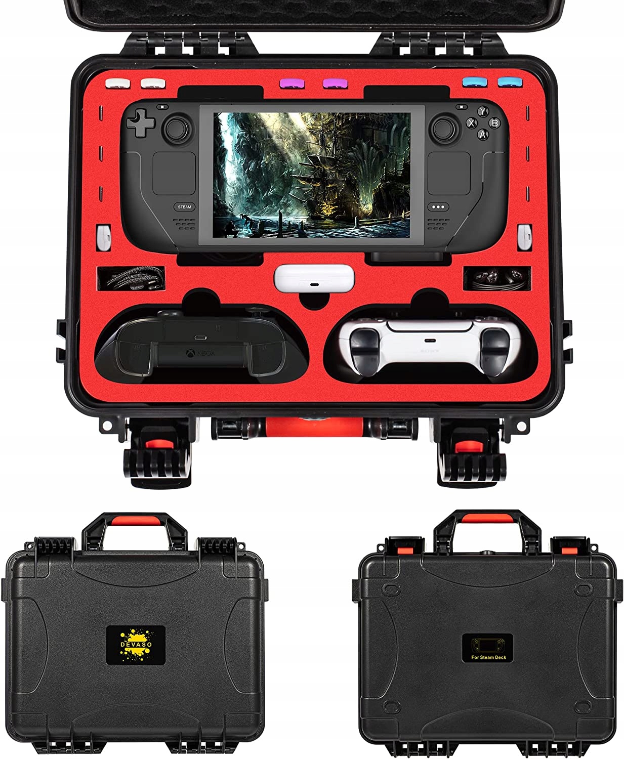 【Зберігання великої ємності】: футляр DEVASO Steam Deck ідеально підходить для подорожей і домашнього зберігання. Розмір кейса 15,4*12,8*6 дюймів, вага 4,29 фунтів, м'яка підкладка розроблена спеціально для Steam Deck. Сховище великої ємності, може вмістити Steam Deck, контролери, адаптер, кабель даних, зарядну станцію та інші аксесуари, більш портативне та безпечне для зберігання на винос або домашнього зберігання.