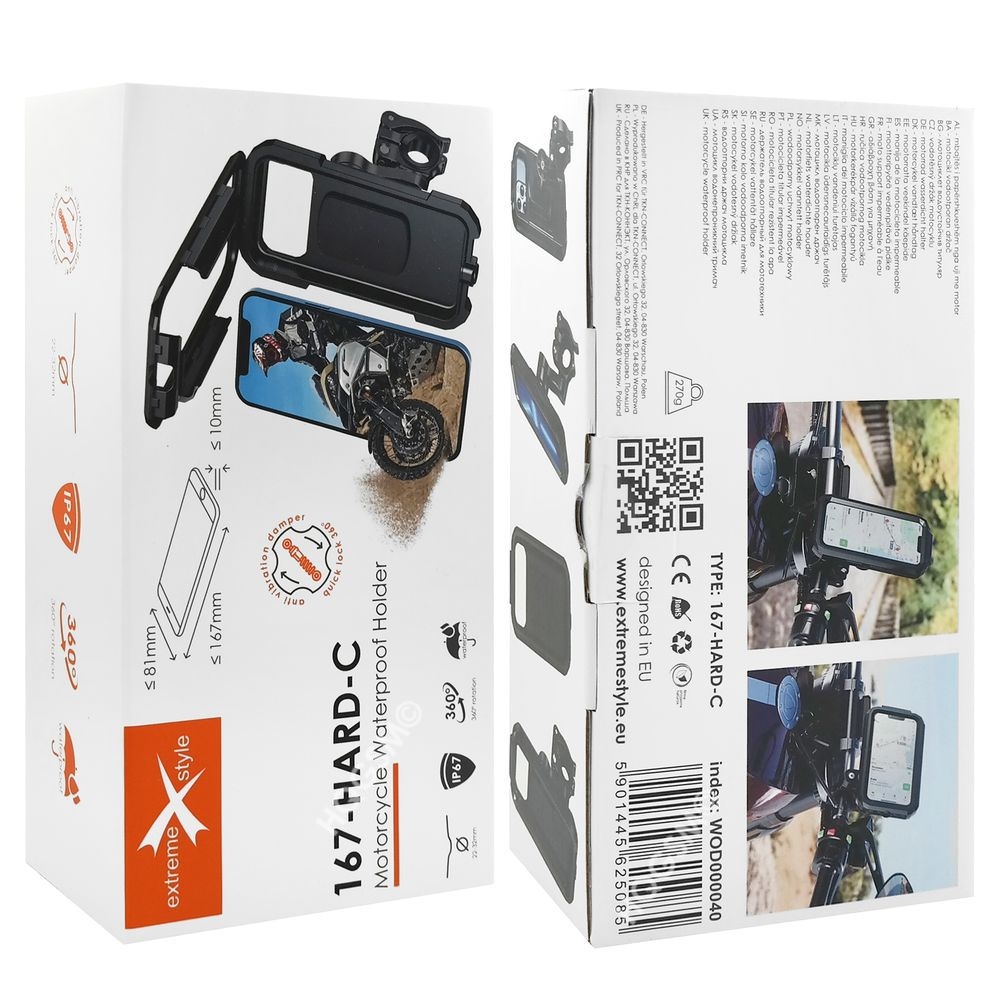 водонепроникний корпус та тримач, який слід прикріпити до керма . Весь набір виготовлений з найвищої якості матеріалів. Ідеально підходить для мотоцикла та велосипеда.