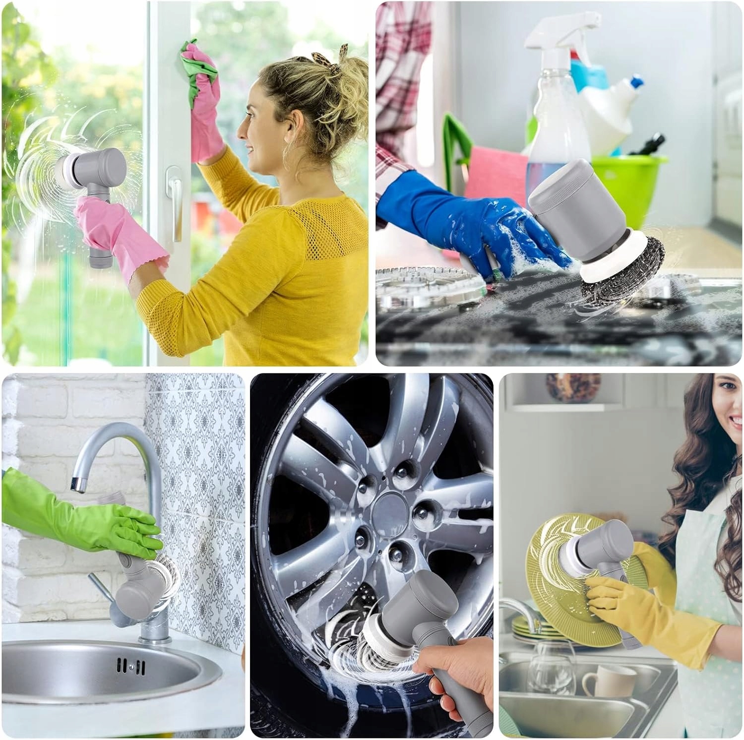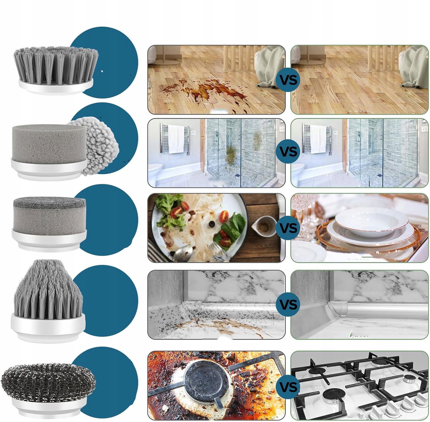 4 Змінні головки пензля: Ця кисть з очищенням Він хороший помічник у прибиранні домашнього прибирання! Він оснащений 4 різними Типи замінних головних головних щіток, таких як плоска пензлик, загострена кутова щітка, дротяна щітка, чистяна щітка, губна щітка. Може задовольнити потреби різних можливостей для чищення