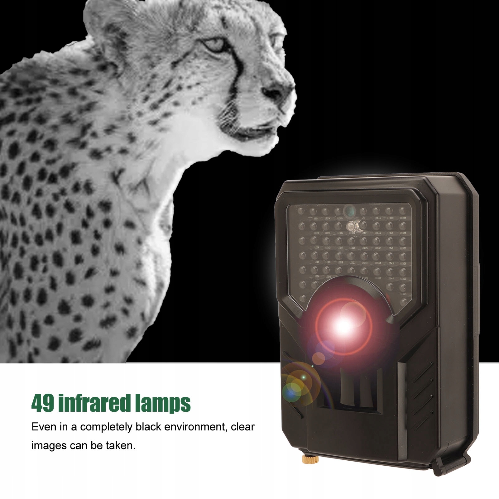 1. Інфрачервоний датчик нічного бачення: коли тіло людини (або тварини) рухається та спричиняє зміни температури навколишнього середовища, індукційно спрацьовує камера стеження та автоматично робить фотографії або записує відео високої чіткості.