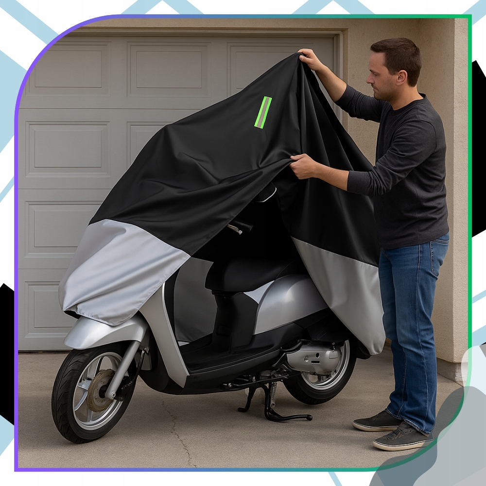 ✅ Обирайте елегантність та функціональність. Чорно-сріблястий водонепроникний чохол XL для мотоцикла, скутера та велосипеда - це поєднання практичного захисту з естетичним зовнішнім виглядом, який виправдає очікування кожного водія.