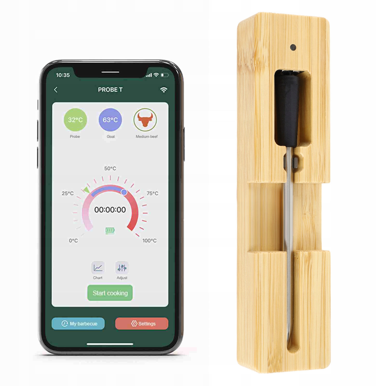【Зручне застосування зонду Temp】- Термометр харчових продуктів сумісний із застосуванням Temp Temp, який можна завантажити з App Store. Ця програма, сприятлива для користувачів, дозволяє контролювати та контролювати температуру їжі безпосередньо зі смартфона. Попрощайтеся з постійним відкриттям гриля або духовки, щоб перевірити їжу!