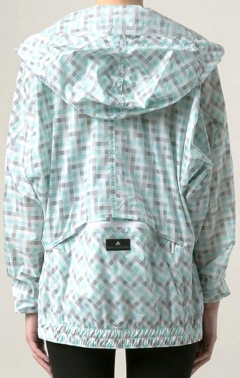 Виготовлений жіночою велосипедною курткою Adidas Wiatrówka. Він був розроблений добре відомим дизайнером Stella Mc Cartney. Виготовлений з високоякісного водонепроникного та вітру, стійкого матеріалу. Куртка з ковзанням. Гора Лужна, розібрана зшитою гумкою. Рухи закінчувались гнучким білим шматочком. Велика кишеня "велосипеда" на спині. Куртка з капюшоном з струною.