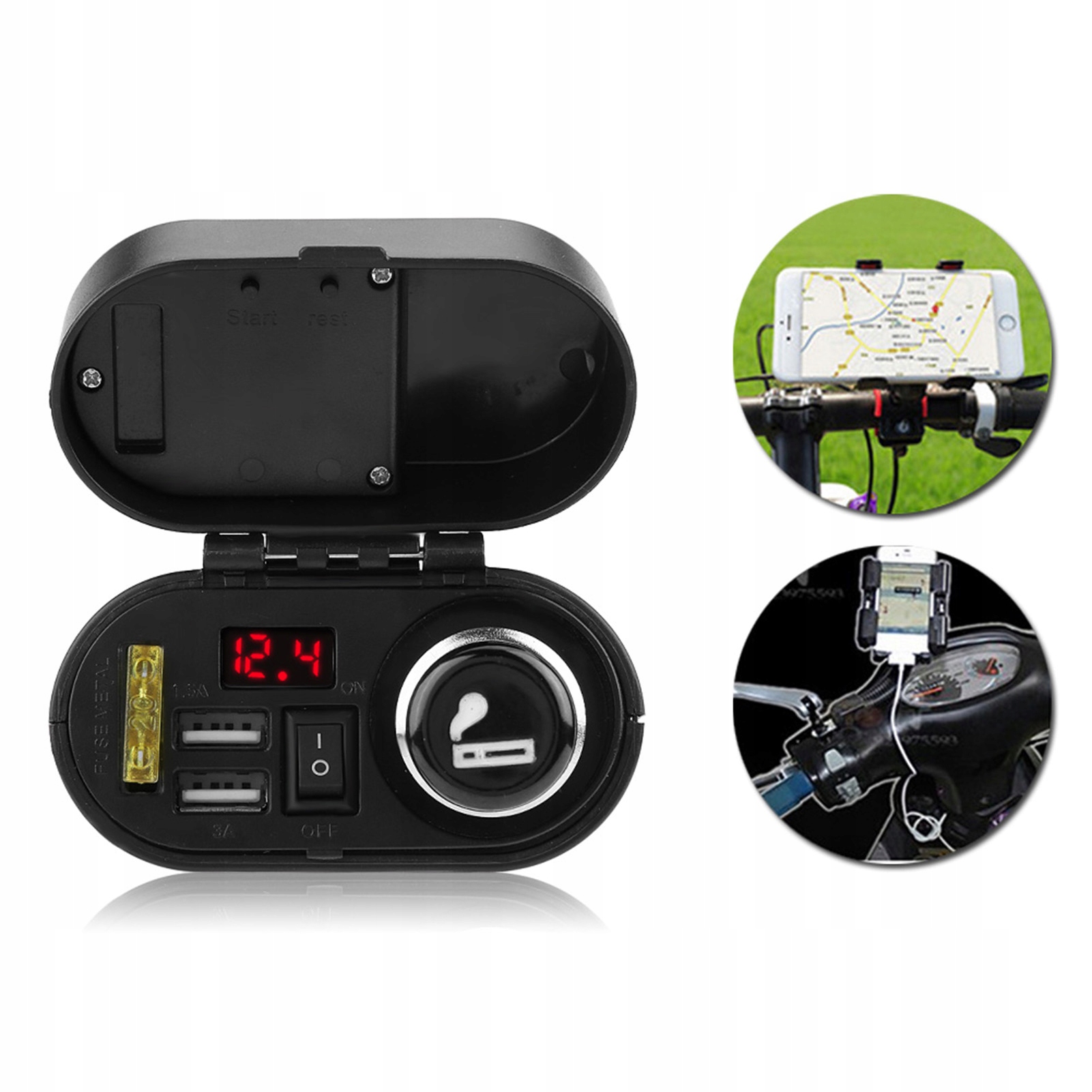 Зарядний пристрій для мотоцикла з подвійним USB-портом дозволяє одночасно заряджати два цифрові пристрої, такі як мобільний телефон, GPS, MP3, фотоапарат або планшет. Має гніздо автомобільного прикурювача з незалежним перемикачем ON/OFF, що полегшує керування. Оснащений дисплеєм напруги, який показує стан заряду батареї в межах нормального використання, гніздо прикурювача виготовлено з керамічного ізоляційного матеріалу, що забезпечує безпеку. Високоякісний пластиковий нейлоновий корпус гарантує стійкість до ударів і дії низьких і високих температур. Є багато варіантів кріплення - його можна встановити на кермо або кронштейн дзеркала заднього виду. Специфікація: Матеріал: ABS-пластик Колір корпусу: чорний Колір дисплея: Вхідна напруга: DC 12-24 В Вихідний струм: 3,1 А Розмір: прибл x 73 x 40 мм. Довжина кабелю: приблизно 145 см. Вага упаковки: приблизно 218 г. Підходить для більшості мотоциклів, електричних велосипедів та набір для скутерів: 1 * Зарядний пристрій для мотоцикла 1 * Набір аксесуарів для кріплення