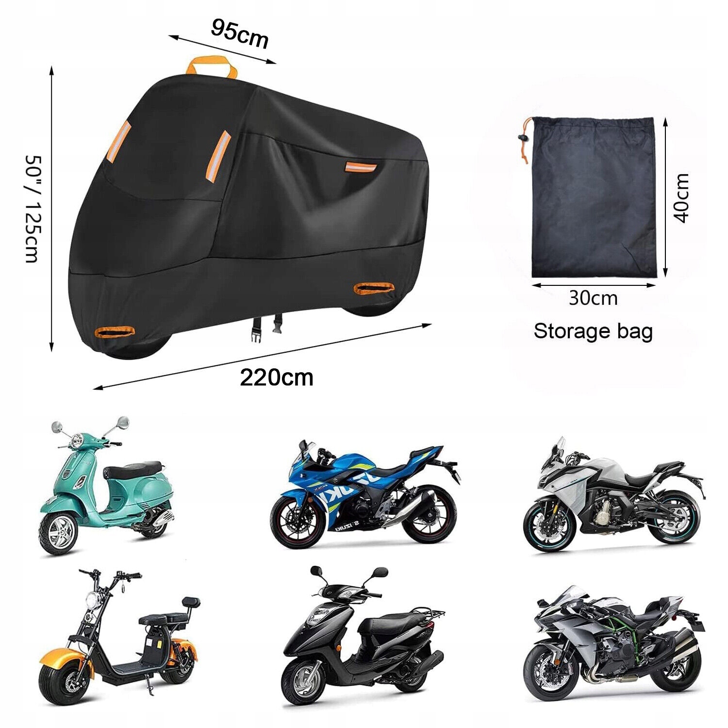 🏍 Універсальний розмір: Цей мотоциклетний брезент на вулиці має розміри 220 * 90 * 125 см і підходить для більшості мотоциклів, таких як Harley Davidson, Honda, Yamaha, Kawasaki, Kawasaki, Suzuki.