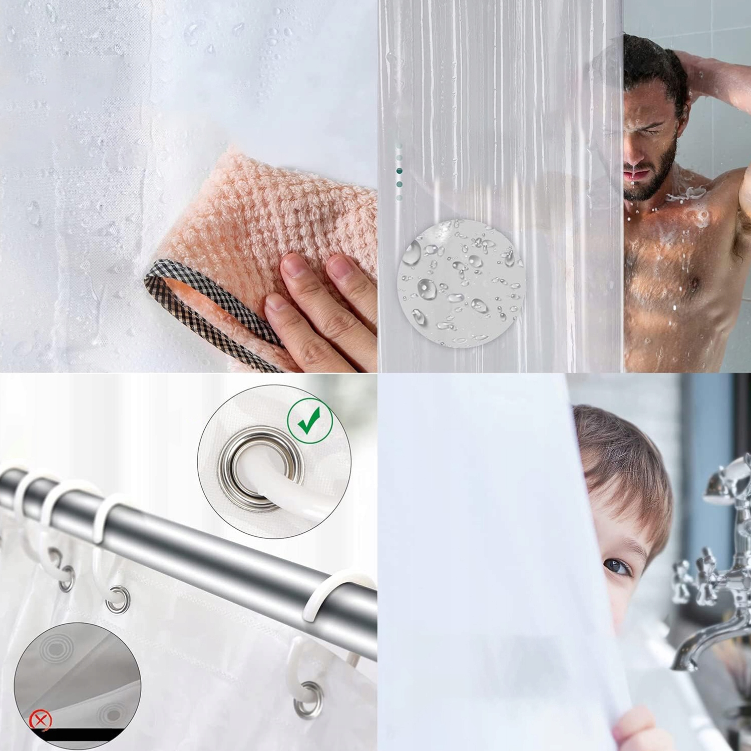 ✅Просте встановлення:у верхній частині душової шторки є 12 люверсів з нержавіючої сталі та 12 пластикових кілець, які дозволяють легко та чітко встановити душову шторку. Він ідеально підходить для прямої або вигнутої душової стійки. Душова шторка 180x200 см легко закриє ванну, вона дуже зручна та міцна.