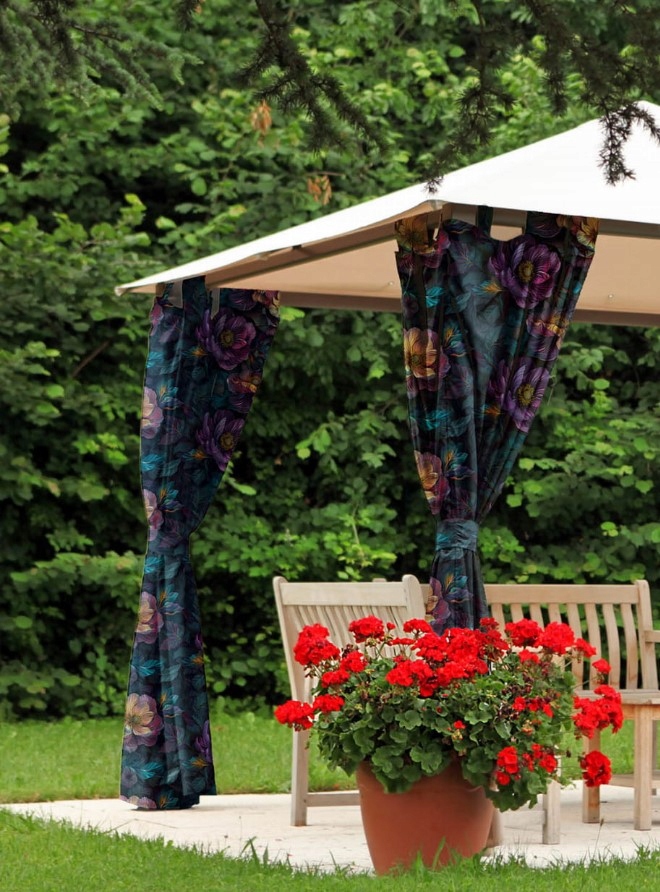 Застосування: садові штори, подушки для садових меблів та сидінь, скатертини та протектори, садові намети, покупок, рюкзаки, мішки -косметики, пляжні шезлонги, тераса, сонцезахисні окуляри, покрівля, що не мають дітей, прієти,