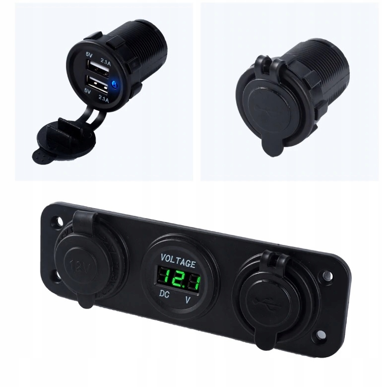 Панель складається з більш легкої розетки , цифрового вольтметра відображення поточного рівня напруги акумулятора та двох портів USB швидка зарядка з напругою 5В 3.1a (2.1a + 1a) . Отже, зарядка, наприклад, навігація та телефон Налаштування користувача пристосовано до . Гніздо мають обкладинки води.