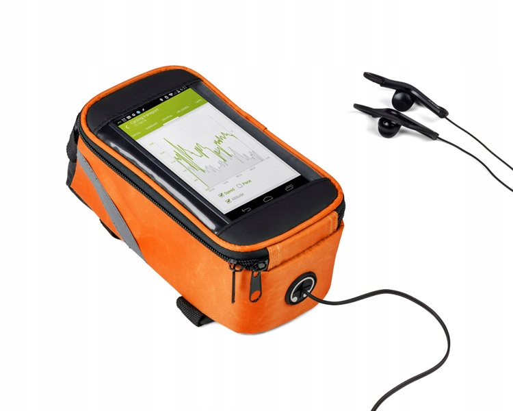 твердий , водонепроникний, прикріплений до рами за допомогою міцних, регульованих ремінців, кріплених сильною липучкою, велосипедною сумкою має ємність , блискавка для дрібних предметів. Крім того, сумка містить навушники та кишеню з сенсорною фольгою на смартфоні , , що дозволяє використовувати телефон, не витягаючи його з сумки. Дивлячись на навігацію або контроль музичного плеєра, не є проблемою, навіть коли їздить на велосипеді. Сумка, виготовлена з дуже хороших матеріалів.