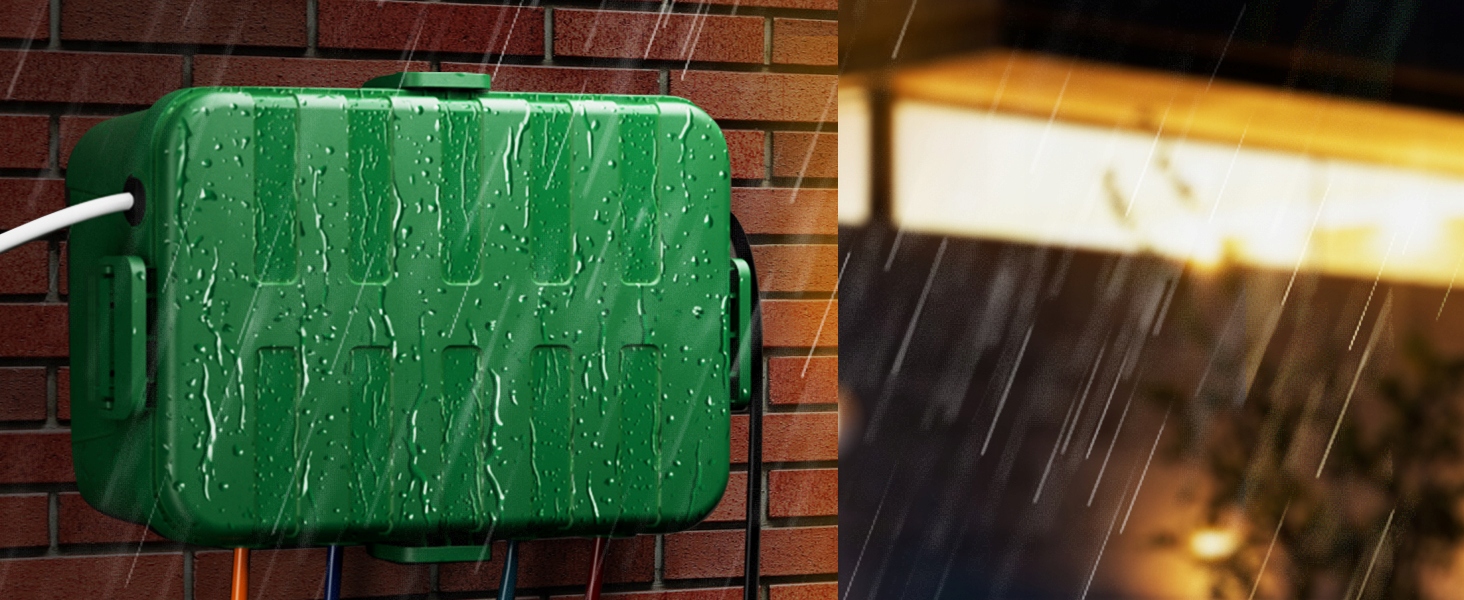 - ✅Створено для безпечного тимчасового зовнішнього кабельного з’єднання. Завдяки великим розмірам (34,5 x 24 x 12 см) і 6 кабельним вводам (спереду * 4 + збоку * 2) це комплексне рішення для захисту зовнішніх подовжувачів живлення, розеток таймерів, подовжувачів, великих адаптерів і більшості інших електричних з’єднань.