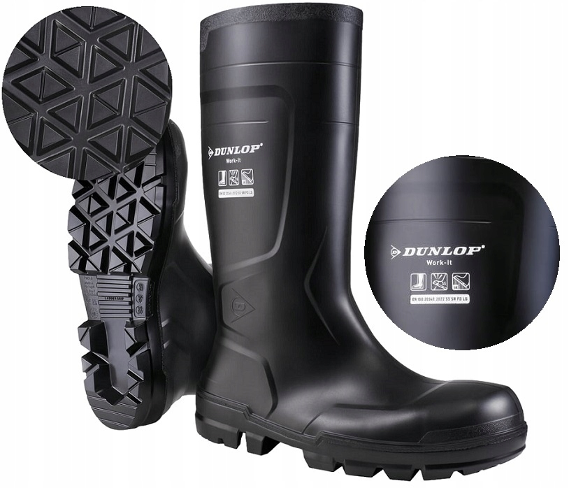 Взуття має захисний підйомник і єдину стійкість до проколу, щоб забезпечити максимальний захист від падіння та проникаючих предметів. Випробувано та сертифіковано відповідно до стандарту EN ISO 20345: 2011, побудований захисний підйомник використовується для захисту пальців від інсультів з енергією 200 Дж та стисненням із вантажом 15 кН. Захисна центральна підошва розміщується в підошві і запобігає проникненню до тих пір, поки міцність взуття 1100 Н. Данлоп із захисним підйомом та середньою підошвою позначається як повна безпека.