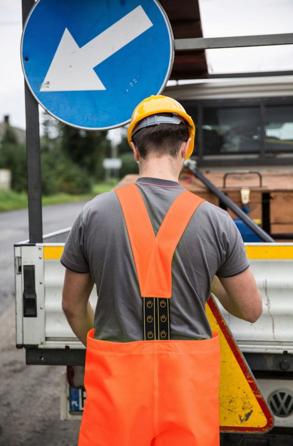 водонепроникні, попереджувальні сади з світловідбиваючими стрічками з інтенсивною видимістю для професійного використання. використовується в місцях та ситуаціях, коли наявність людини повинна бути візуально сигналізована як вдень, так і вночі. Колір: флуоресцентний помаранчевий. Розмір: XS/48, S/50, M/52, L/54, XL/56, XXL/58, XXXL/60, XXXXL/62. 4 Він характеризується підвищенням видимості та стійкості до розриву та гідроізоляційної шви. Хімічний склад покриття гарантує стійкість до тканини несприятливих погодних умов та згинання при температурі до -50 ° С. Будівництво: функціональні, регульовані брекети з широкою гумою ззаду, продукт, виготовлений за допомогою двосторонньої техніки зварювання, що ефективно збільшує силу швів, горизонтальні відбиваючі стрічки на ногах покращують безпеку користувача. Призначення: Застосування в промисловості, дорожніх робіт, будівництві, послугах. Кольори продуктів, спрямовані на галузі, в яких повинні бути видимі працівники, включаючи: дороги, вулиці, нафтопереробні заводи, рятування гірничих робіт, порти, бурові платформи, гірничі вікна.