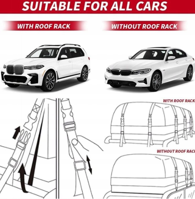 - Легко встановлюється та відкривається з обох боків. Сумка для багажника на даху постачається з 8 смужками, які можна легко прикріпити до будь-якого автомобіля за лічені хвилини. Відкритий дизайн з обох сторін дозволяє легко розмістити сумку на даху в автомобілі.