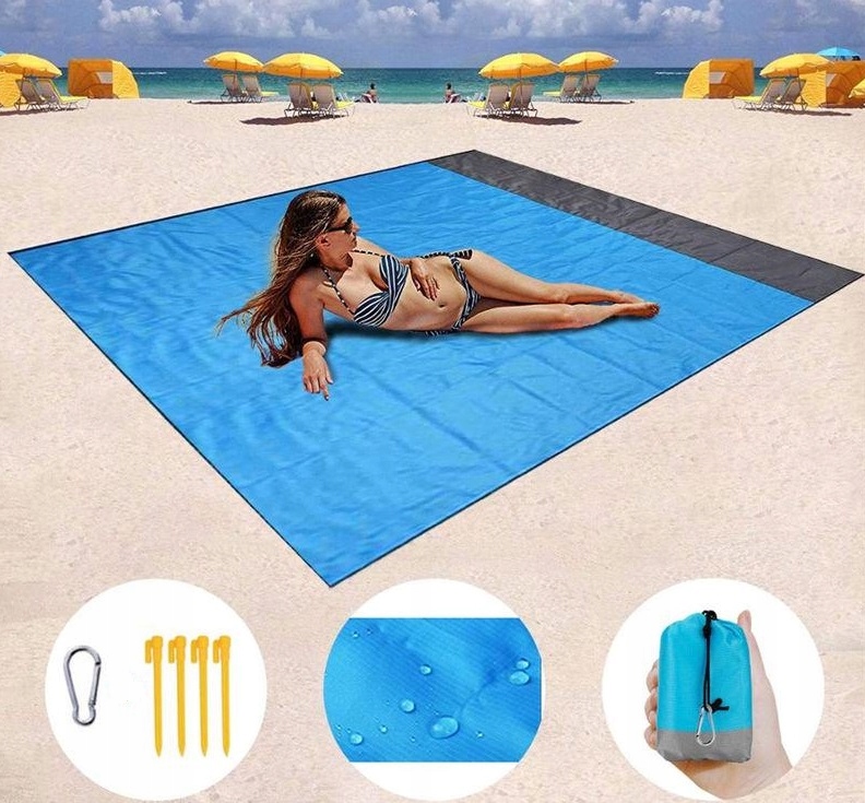 Корисний водонепроникний килимок для кемпінгу та пляжу з чохлом, карабіном і гачками для кріплення.
