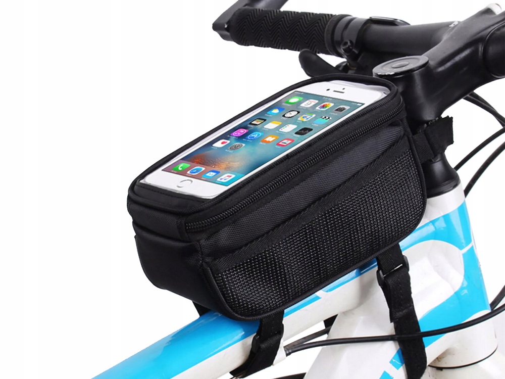 Водонепроникний мішок для рами велосипеда, корисний для кожного користувача велосипеда. Маленька зручна сумка, в якій ми можемо сховати дрібні аксесуари, такі як телефон, ключі, гаманець. Завдяки цьому рішенню нам не потрібно брати додатковий рюкзак або сумочку з нами. Сумка послужить нам і місцем для зберігання підручних речей, і водночас чохлом для телефону. Крім того, збоку є невелика кишеня.