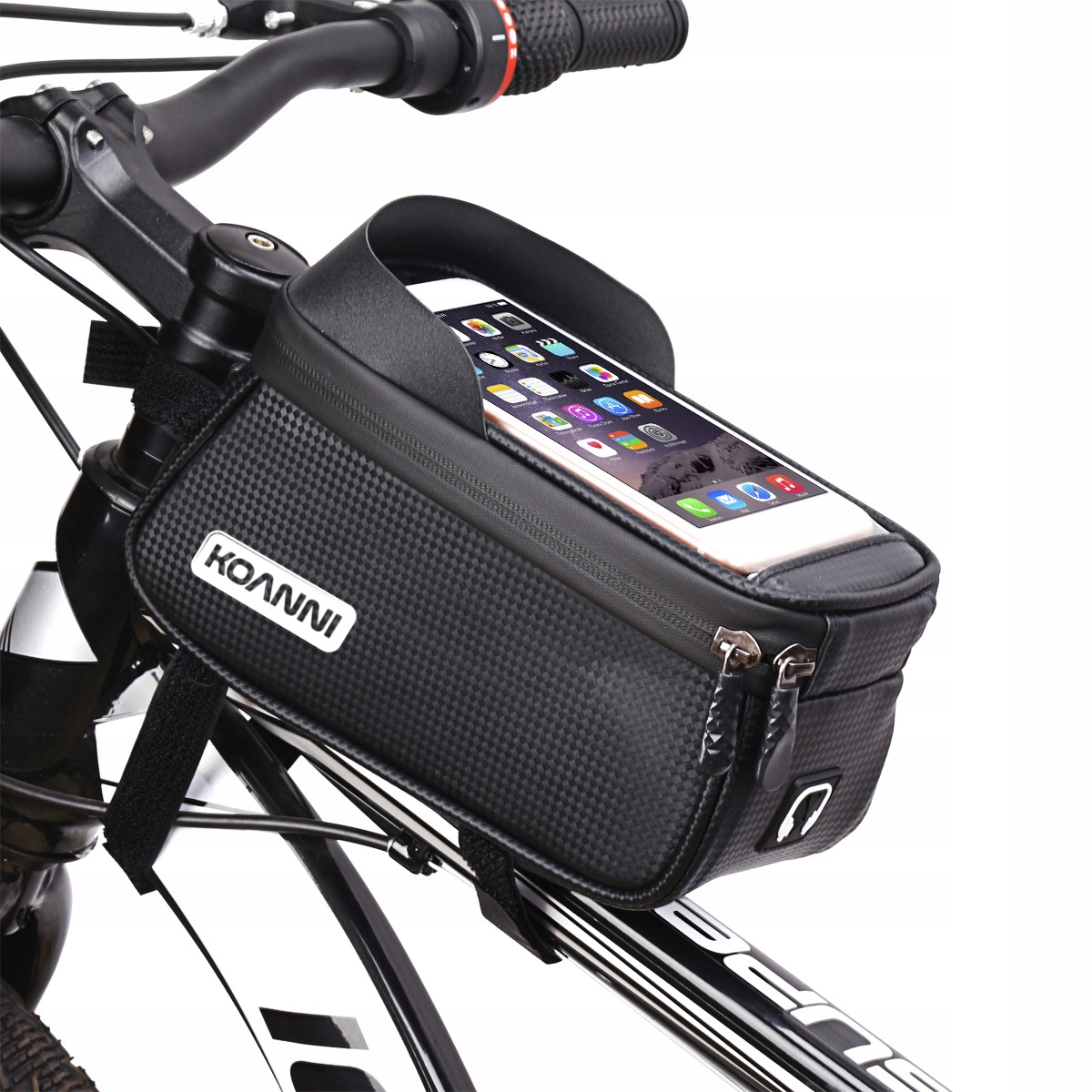 Кріпиться на раму та кермо за допомогою 3 ременів, закріплених міцною липучкою.