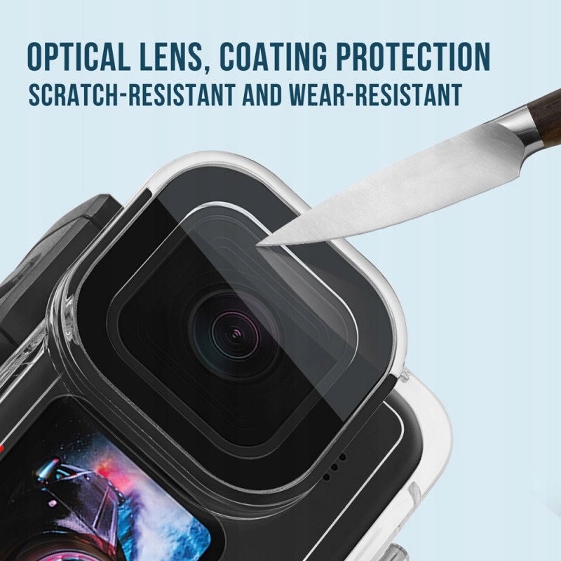 Корпус забезпечує високий захист камери GoPro від усієї бруду (грязь, пил, пил), механічні пошкодження (подряпини, подряпини) і забезпечує хороший захист камери. і падіння. у воді. сильніша застібка = більша безпека під час використання!