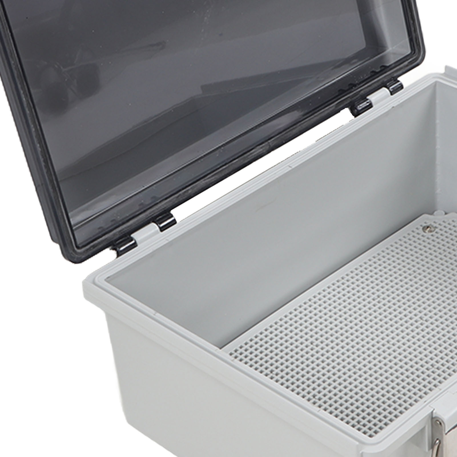 Водонепроникний корпус електричної розподільної коробки з прозорою кришкою сірого кольору