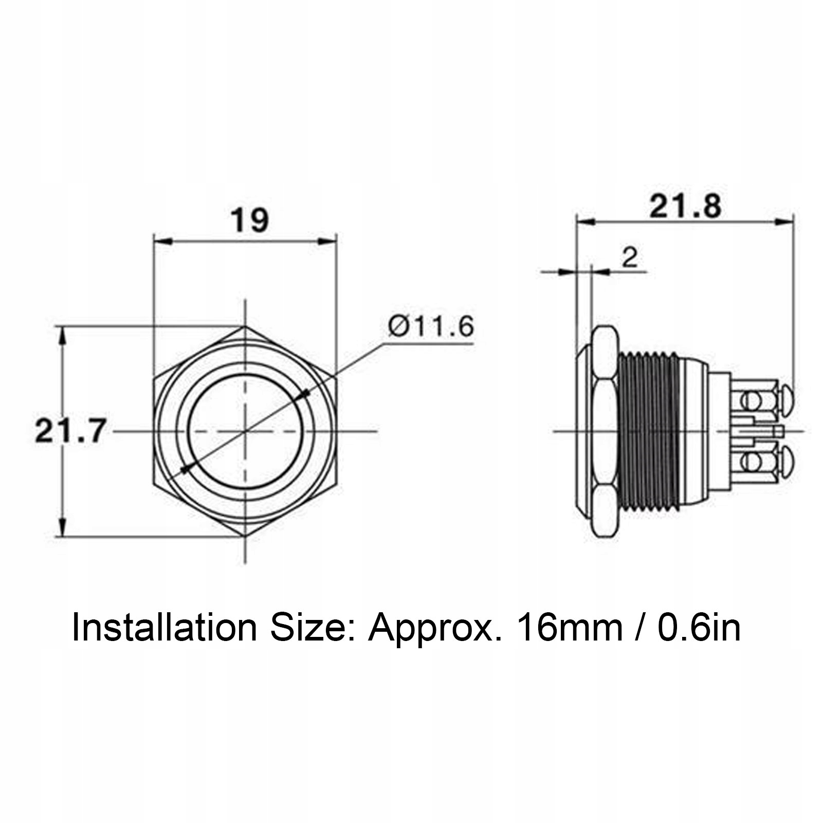 Розмір для встановлення: прибл. 16 мм / 0,6 дюйма