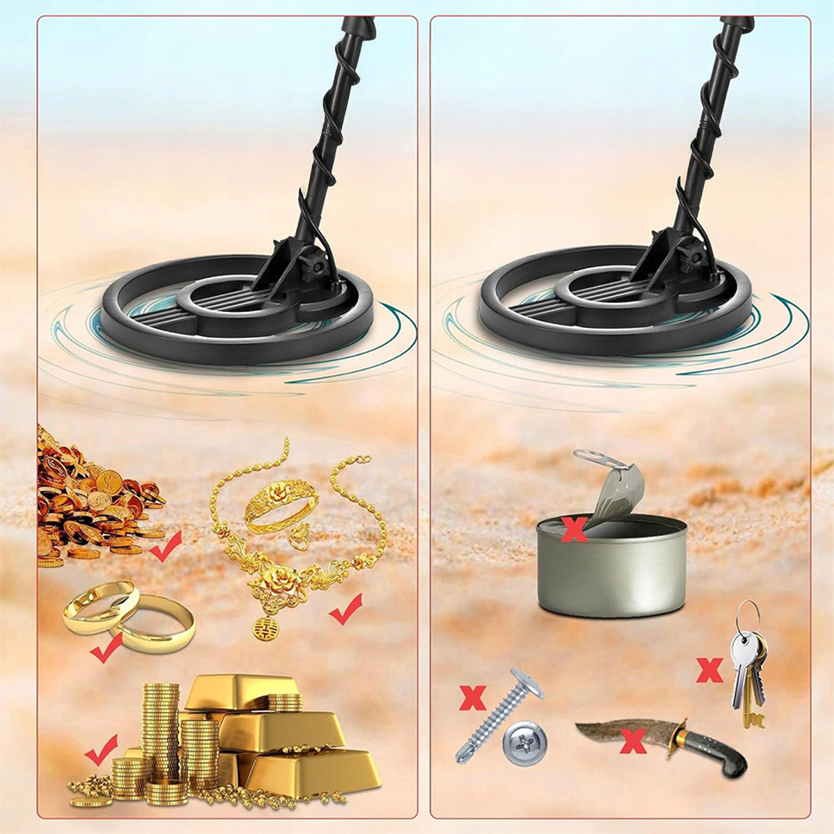 ✅ Водонепроникний зонд дозволяє виявляти під водою, що робить його ідеальним для використання на відкритому повітрі, наприклад на пляжах, струмках або задніх дворах.