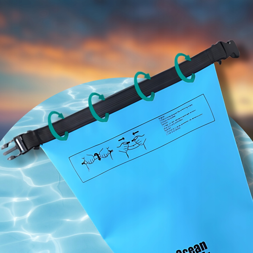 ✅ Він захищає тісне закриття рулонного закриття запобігання зачиненню вологи всередину пряжкою. Після кріплення пряжки смужкою вони утворюють транспортну ручку. Набір також включає регульований ремінь , завдяки якому сумку можна носити, як мішок.