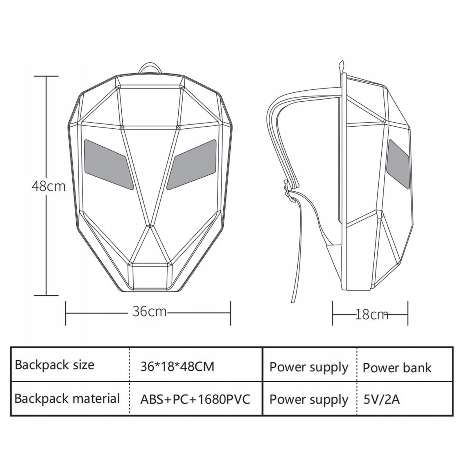 4. Технічні параметри: світлодіодний світлодіодний рюкзак Smart Rider з водонепроникним 3D Hardcor; Задня ширина займає пенореальний екран із 1680pvc, 48x48 точковою матрицею, розсувним текстом, зображеннями, GIF та іншими форматами