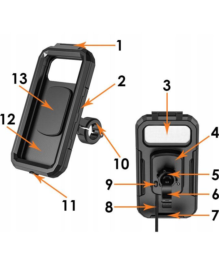 Завдяки використанню універсальних рішень наші тримачі чудово підходять для різних типів мотоциклів і підходять до різних моделей телефонів. Жорсткий чохол тримача має внутрішні розміри 167 x 81 x 10 мм.
