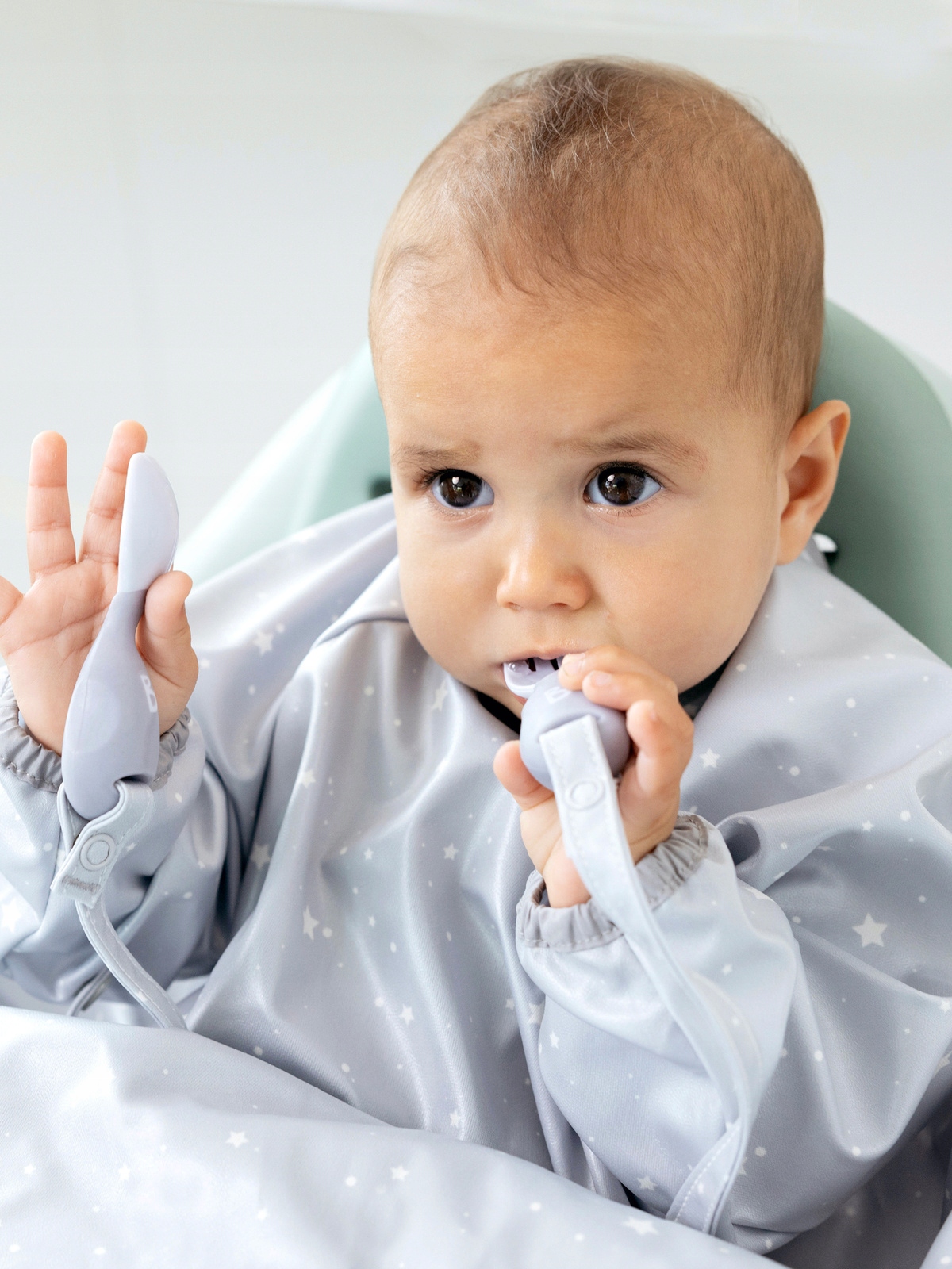 - Підходить до будь-якого дитячого стільчика чи коляски, залишаючи одяг бездоганно чистим і сухим після кожного прийому їжі.