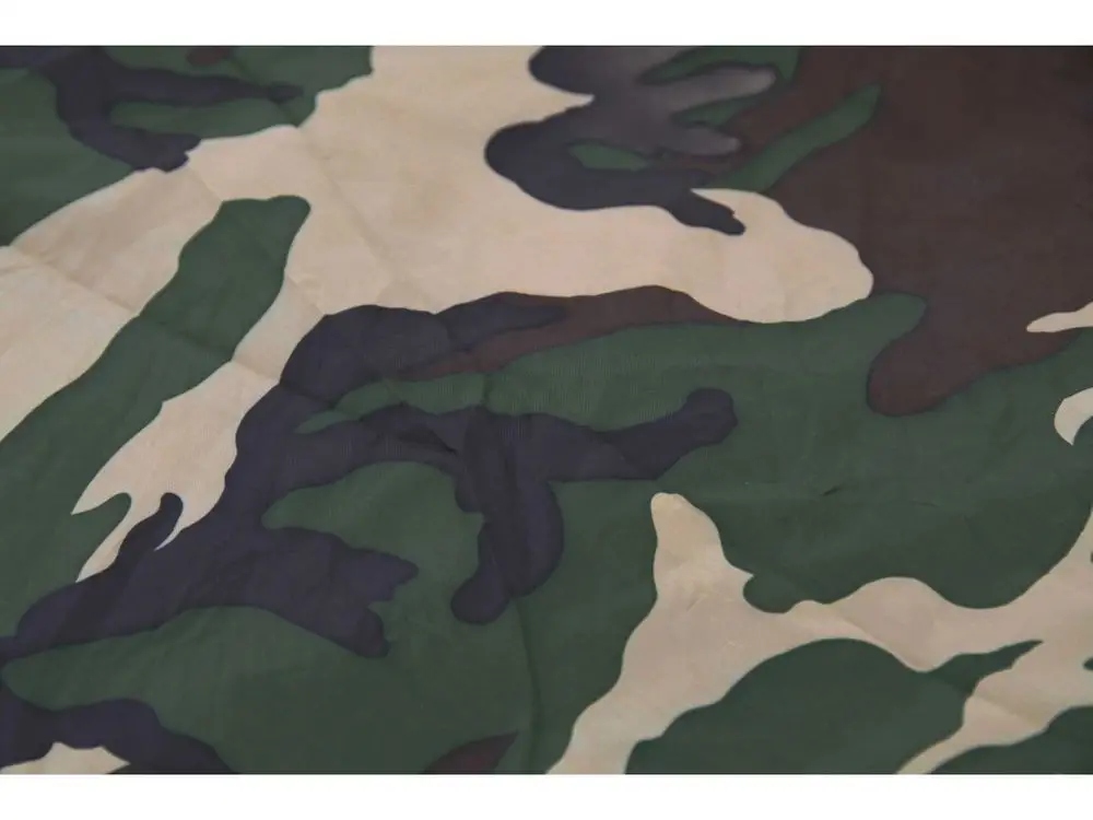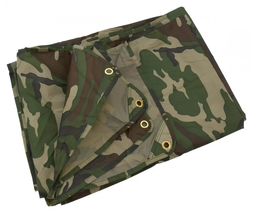 Легкий намет в лісовому камуфляжі розміром 3х4м. Матеріал 100% поліестер з проклеєними швами забезпечує водонепроникність. Матеріал випробували водяним стовпом 2000 мм. Намет оснащений люверсами, завдяки яким намет можна використовувати (наприклад, з туристичними палицями) як укриття чи укриття.